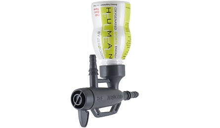You can use either Zerogoo’s lemon-lime flavored Human Fuel ($27.50 for 12 2-ounce bottles), which tastes smooth and flavorful for an energy beverage, or add your favorite powder or gel to the included accessory bottle. Either way, you’ll have to splice the Fuel injector into your hydration system’s hose. The injector, which rests on your shoulder, seemed bulky at first, but in use it never presented a problem and attached securely to all the packs I tried it with (see the second photo above).