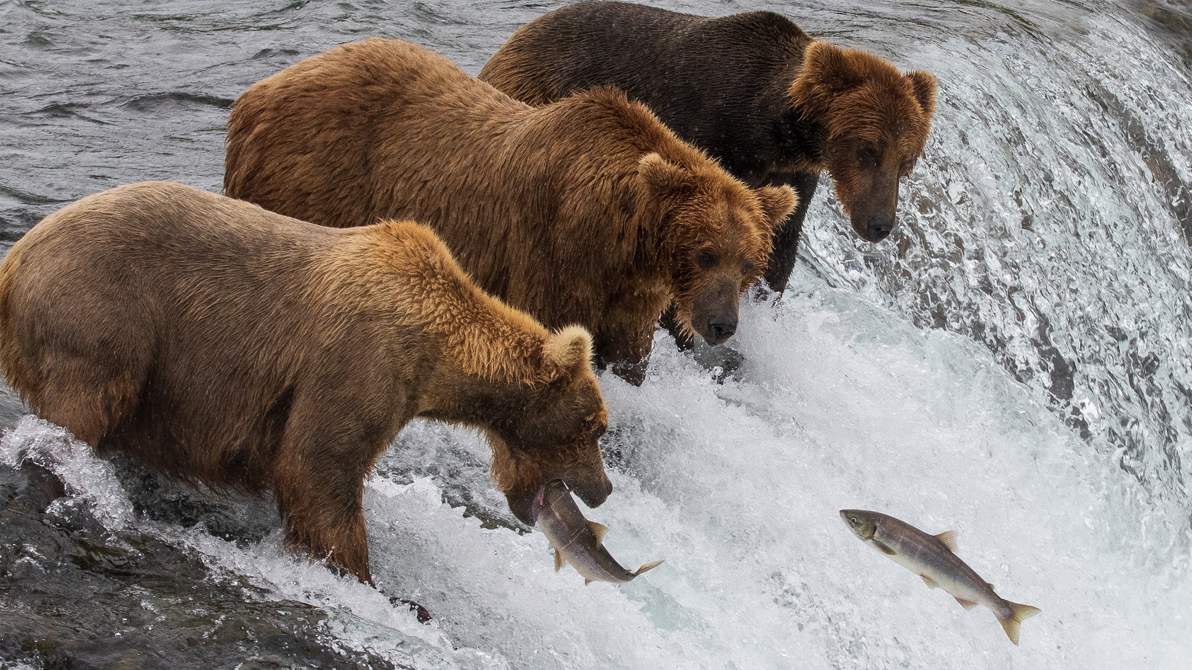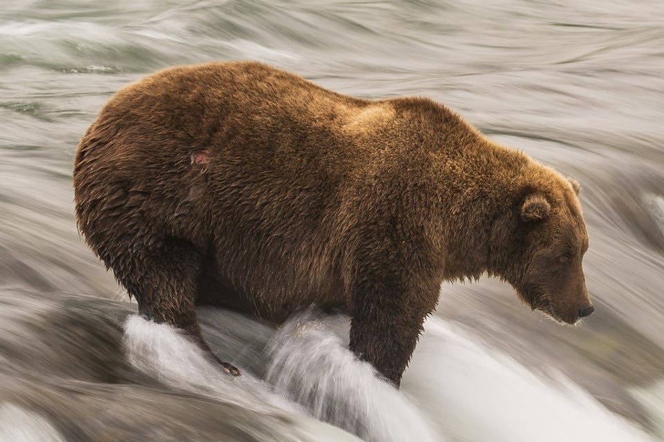 This 5 ½-year-old bear is an innovator. A maverick. If bears gave keynote speeches, 164 would wear a black turtleneck and dad jeans. Why? While most other young bears at Brooks Falls wait their turn for the prime fishing spots or go elsewhere in search of food, 164 has developed his own method of feeding. He stands at the edge of the deepest plunge pool at the base of Brooks Falls, and nabs the salmon as they well up from the water, jumping and falling back down in an attempt to make headway upstream. With this veritable sushi conveyor belt all to himself (no other bears have attempted to fish this spot), I’m betting 164 is the young, super-sized upstart Brooks Falls has been waiting for. —Benjamin Tepler, Gear Editor