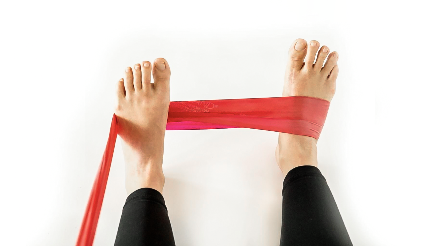 How to: Start seated on the floor with your legs extended straight in front of you and your feet flexed back toward you. Loop a resistance band around your right foot, then place your left foot on top of the looped band so there’s tension between your feet. Hold both ends of the band in your left hand. Slowly rotate your right foot to the right side, then back through the center, and over to the left side. Continue for 30 seconds. Repeat on your other foot.