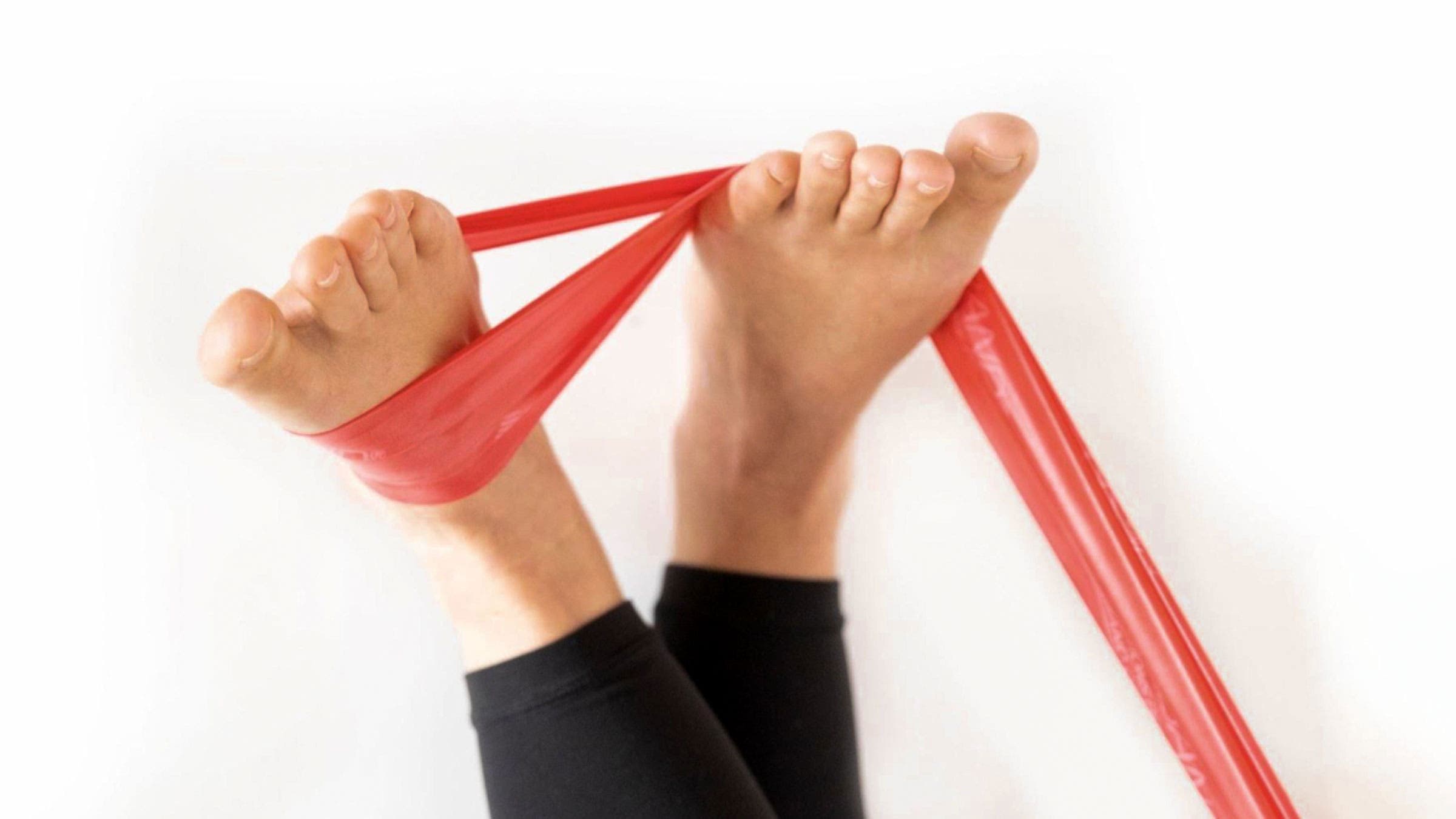 How to: Start standing with a resistance band wrapped under the big toe joint of your left foot and hold the ends of the band in your hands. Extend your right foot forward and lift your right toes into the air a few inches, then begin tapping them in a circle around your body as if you were marking the numbers on a clock face, moving clockwise (10, 12, 3, 6, 9 where 12 is in front of you, 6 is behind you, 3 and 9 are to the sides.). Switch feet.