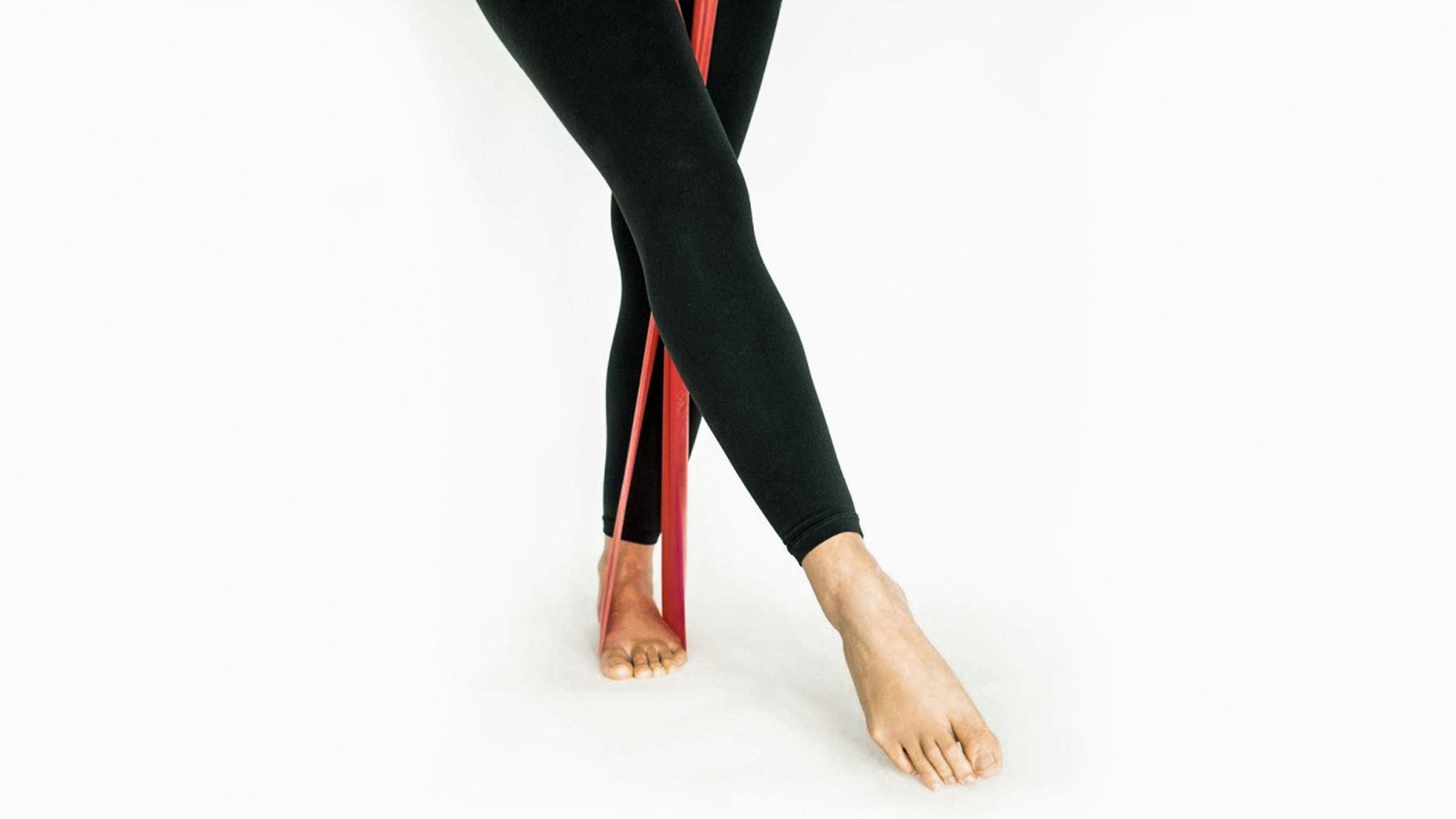 How to: Wrap a resistance band around the backs of both legs, just above your ankles, then cross it in front of your ankles. Loop one end around each toe before securely tying the ends of the band so it is taut but your feet remain under your hips. (We used a red Theraband band that is medium resistance.) Slowly lift your heels off the ground, coming to balance on the balls of feet. Lower back down and repeat for a total of 30 seconds.