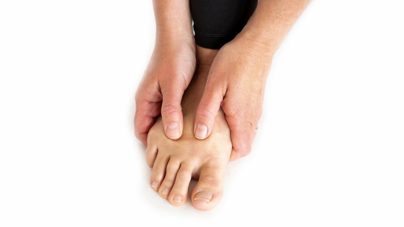How to: Gently press your thumbs on the top of your foot and bring your fingers to the bottom of it. Use your fingers to spread the soles of your feet slightly wider. Repeat for 1 minute. Switch feet.