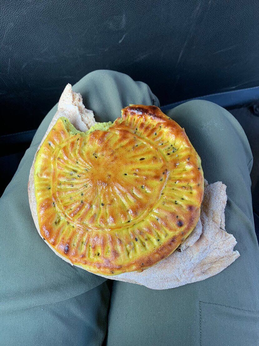 Kaaek bil zait, a Middle Eastern flatbread, is traditionally made in a wooden mold and contains olive oil, seeds, and spices like fennel, anise, and mahlab. Hiker Claire Dumont discovered it while hiking the 400-mile Jordan Trail. “There are so many small bakeries along the Jordan Trail. Every time I passed through a town in the northern part of the country, I would ask about the bread,” she says. “The olive oil and seeds are great sources of calories and nutrients while hiking. A warm flat bread with some tea was also such a treat during a hiking day.”