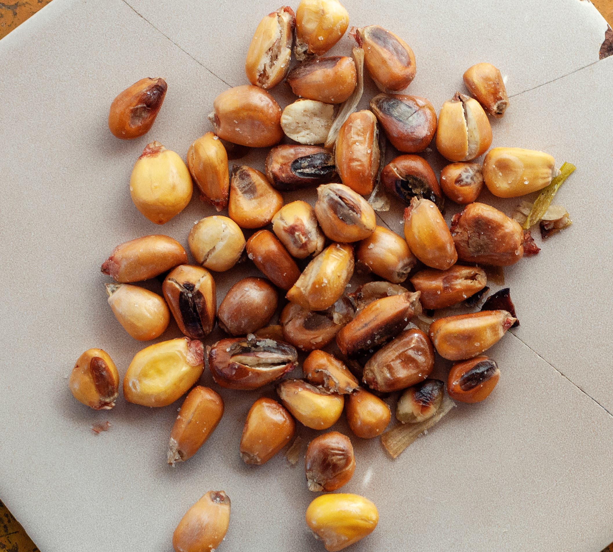 Tostado, likened to corn nuts, are “dried maíz that get fried with onions, garlic and chicharrón (pork fat… sort of). And lots of salt,” says photographer Lane Forrer. “It keeps forever and is loaded with calories. It’s the preferred snack of the chagras, or Ecuadorian cowboys, and you can buy it anywhere from supermarkets to country stores to traditional markets.”
