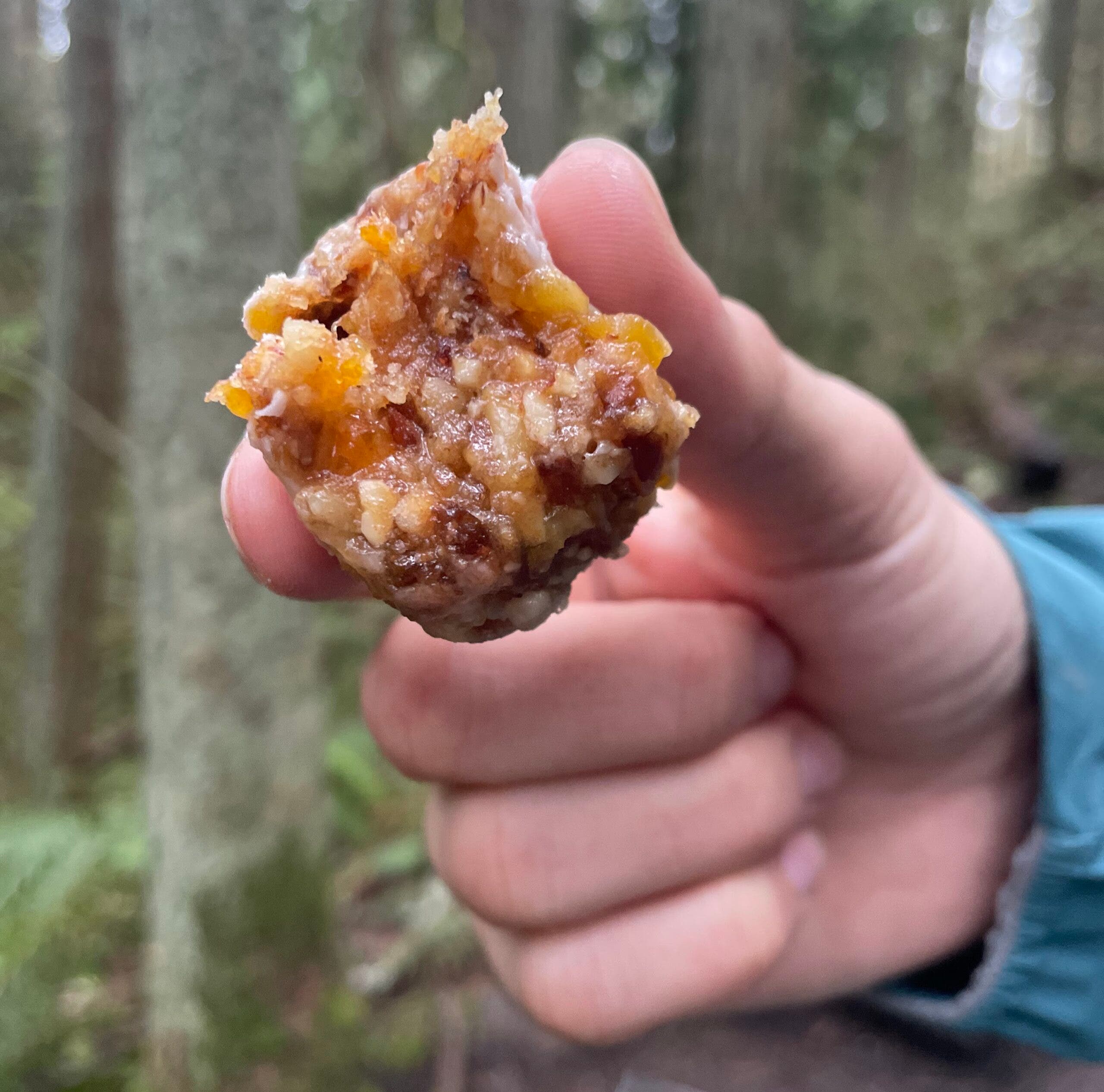 As soon as I took the first bite I could feel my blood sugar spiking. I’ve got a massive sweet tooth, but these were too cloying for my taste. With a heap of powdered sugar, sweetened cookies, corn syrup, and honey on top of the fruit’s natural sweetness, these are absolutely bursting with sucrose. Sometimes on the trail, though, that sweetness is just the energy boost you need. I’d make these again and cut down on the sugar, plus add some more dry ingredients (like the Nilla Wafers) as a binding agent: I stowed a few of these in my coat pocket on a ski day, and they turned into pancakes.