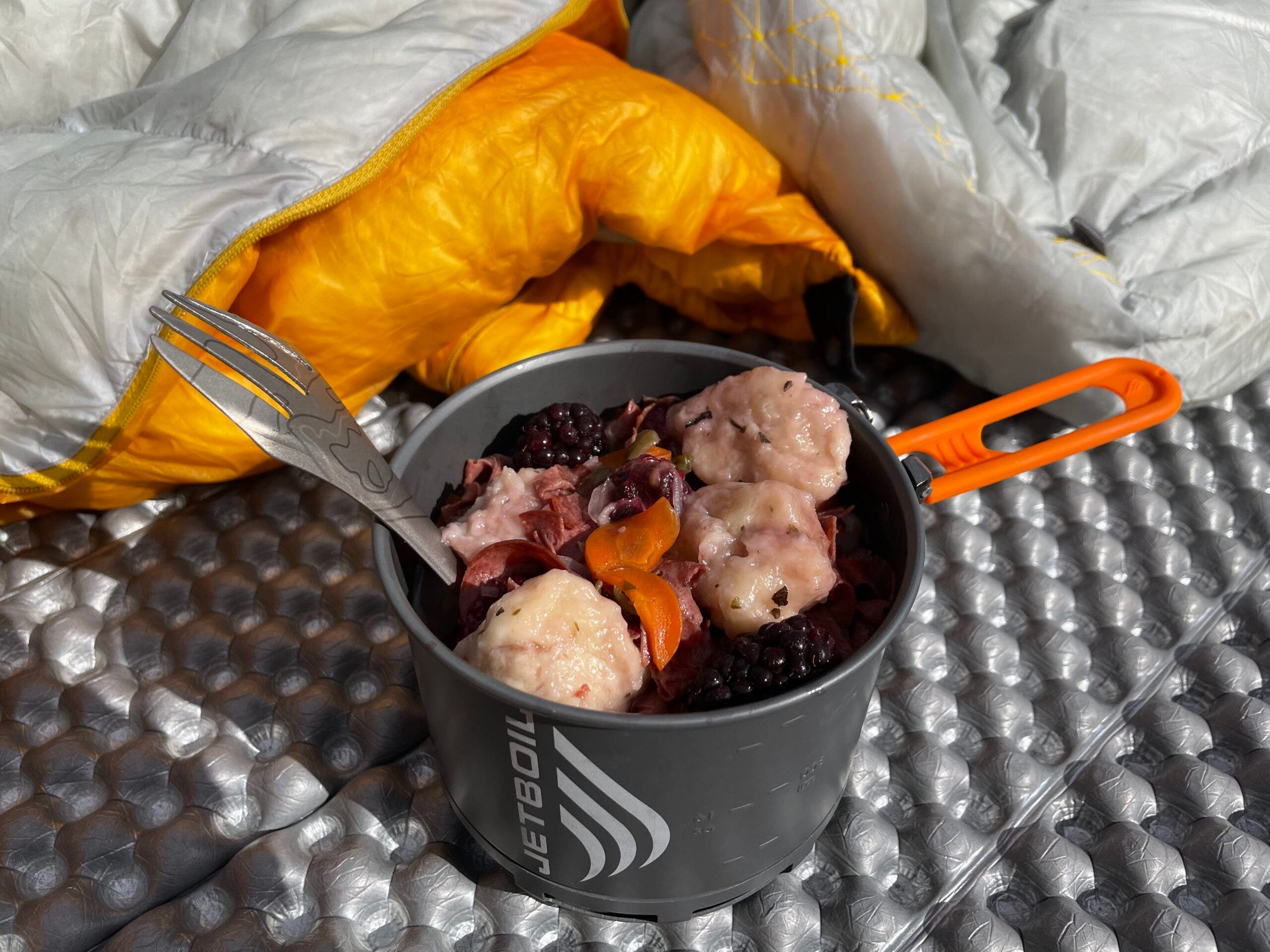 Still, the stew was easy to put together, and relatively nutritious with lots of dehydrated vegetables. The dumplings were the shining star of the dish: They added pillowy pockets of carbs and upped the calorie count. I might steal the dumpling recipe to add some calories to other prepackaged soup meals.