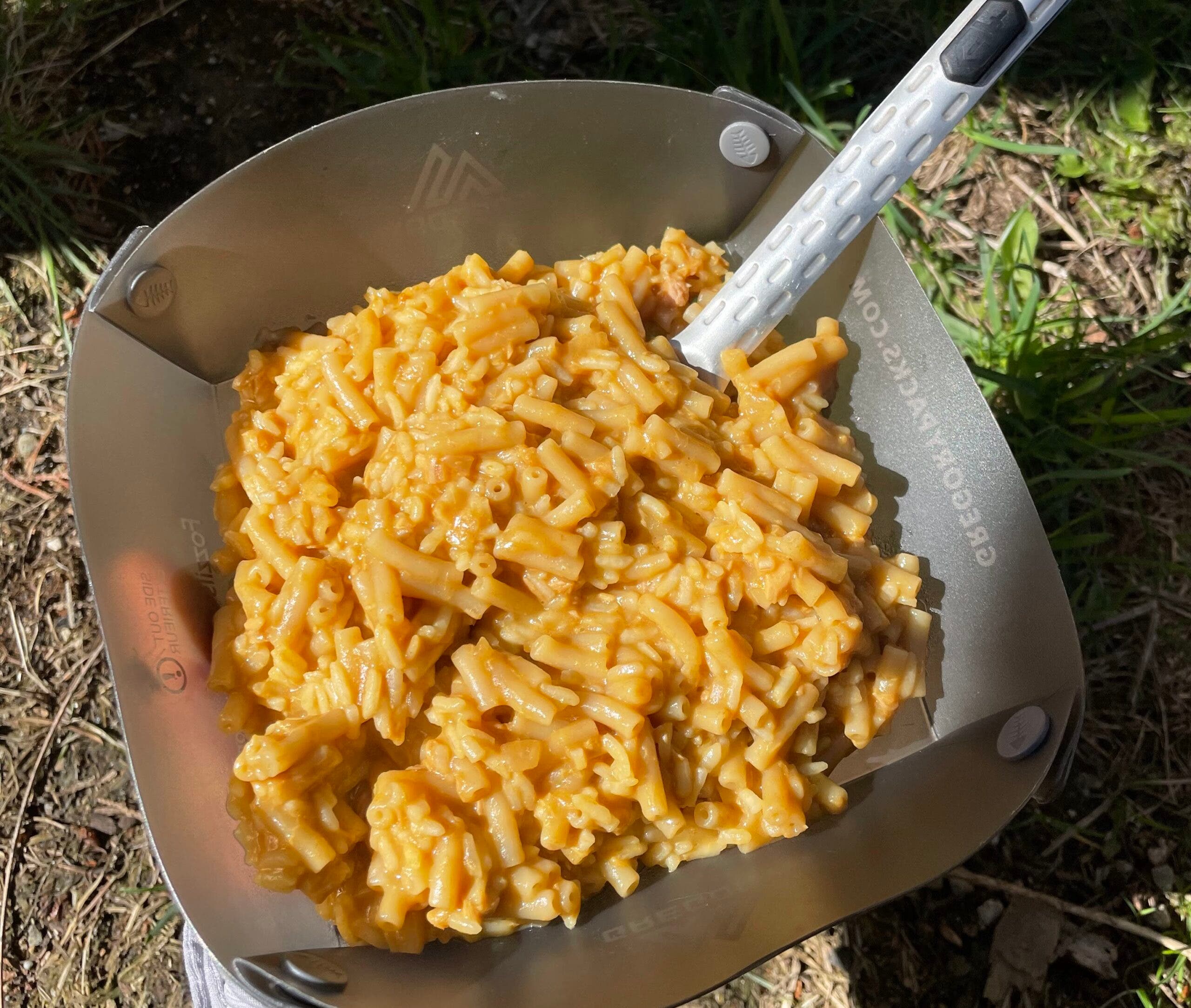The portions were certainly generous, and I worried about wasting food. But the Devil’s Thumb Stew served up a pleasant surprise. I can’t say it was delectable, but it tasted much better than it looked (and smelled). I’d worried the competing flavors would be overpowering, but somehow, they worked in near-harmony. While the tuna stood out, everything else melded together to a generic, almost bland saltiness. I poured on some hot sauce to kick things up a notch; some dehydrated broccoli would have rounded it out nicely. While I might not (OK, I won’t) cook this up at home, it’s a calorie bomb that would certainly satisfy on a cold night in camp (though I’d still prefer plain macaroni and cheese).