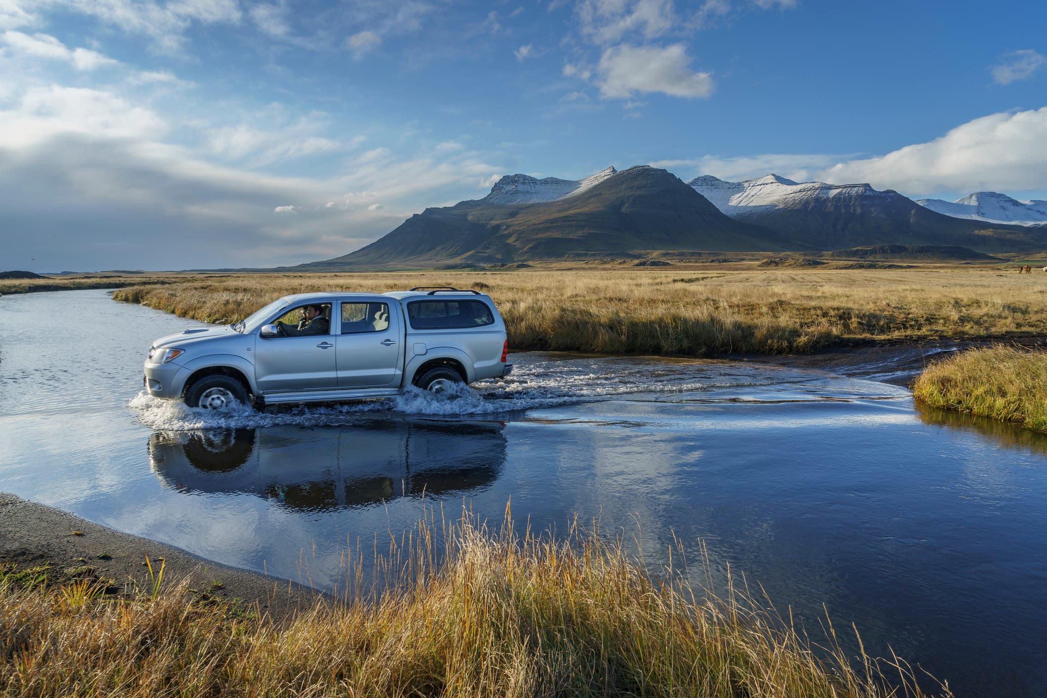 Test the flow. Current too strong to walk across? Don’t drive through it. Tires act like pontoons, and you may float downstream.