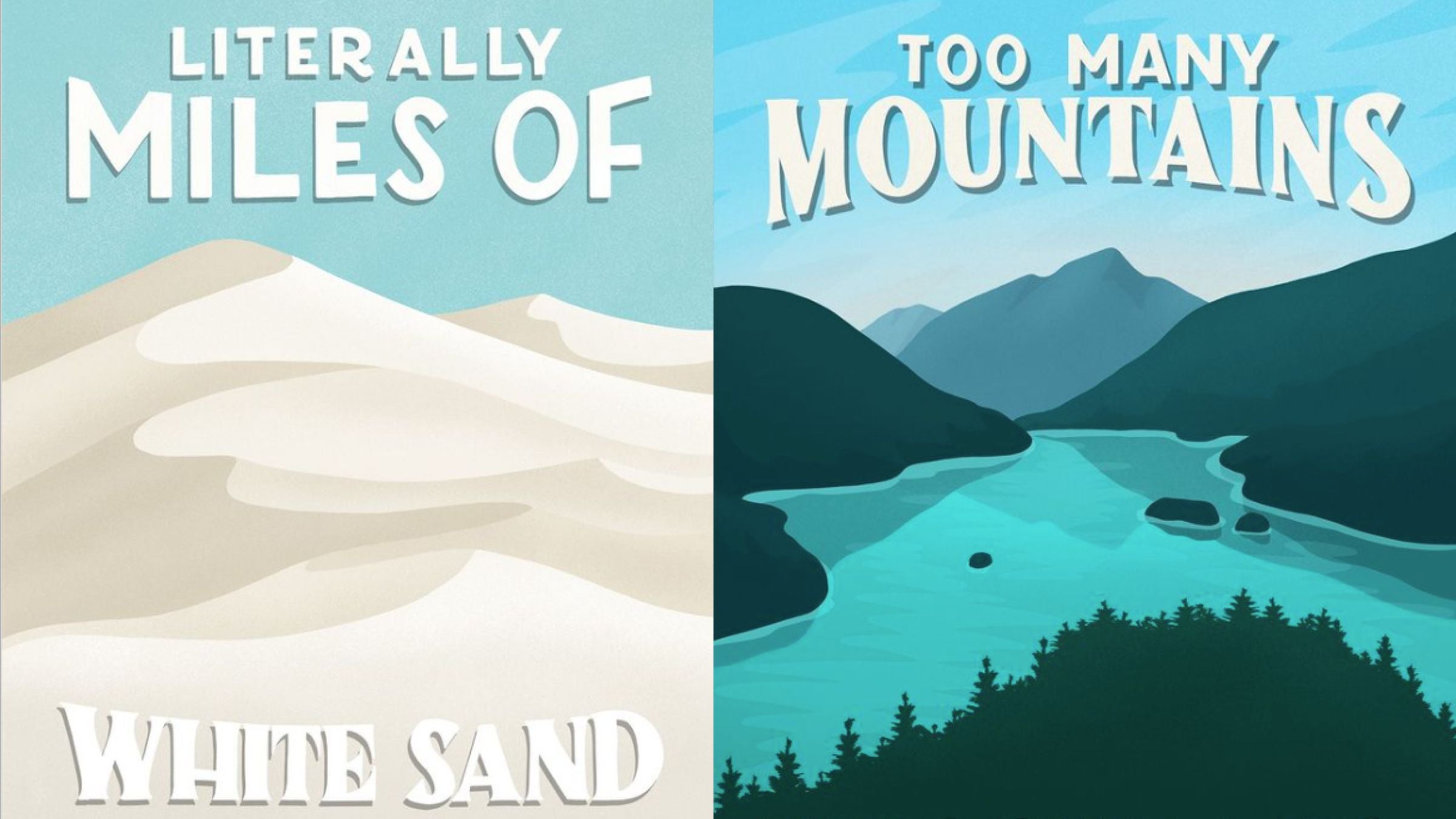 Illustrator and hand lettering artist Amber Share turns really bad reviews of national parks, monuments, and other public lands from Google, Yelp, and Tripadvisor into art. Share has a healthy Instagram following and sells postcards, puzzles, and posters of her work. We spoke with her to learn more about her illustrations and rounded up our ten favorite subpar park reviews.