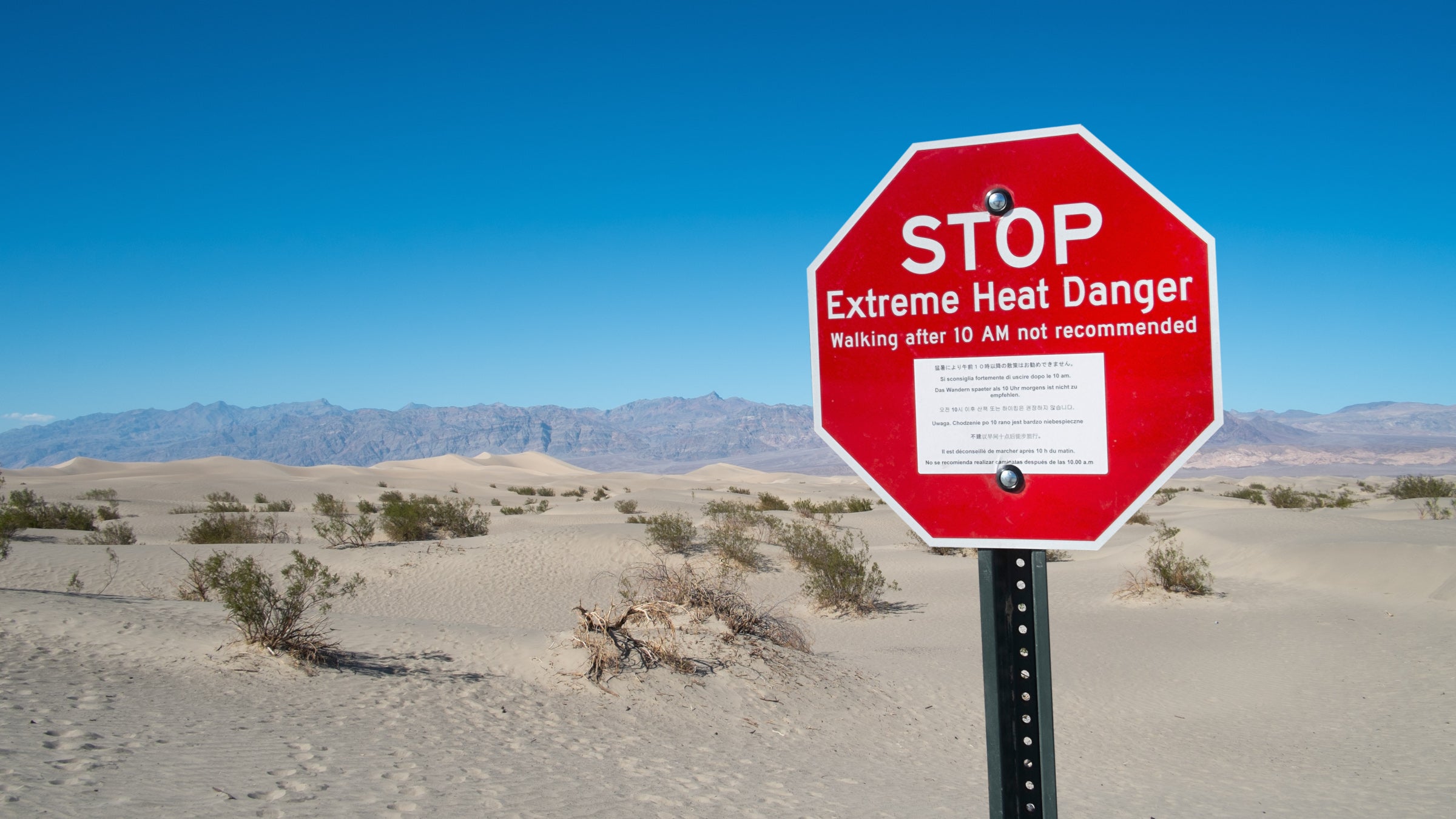 When temperatures are regularly predicted to reach between 110 and 120°F, the park places an alert on its website. Death Valley also has internal safety guidelines that are triggered by heat: At 120°F, the park stops all non-emergency outdoor work to maintain employee safety.