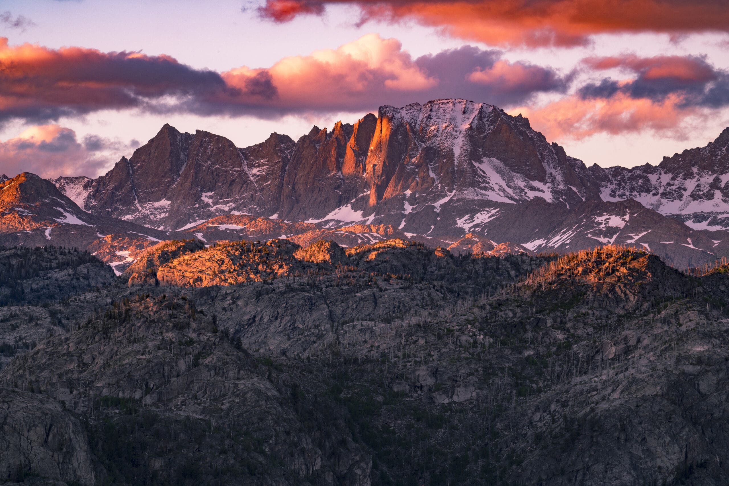 Start at the Elkhart Park Trailhead. Follow the Pole Creek Trail through lodgepole pines to Photographer’s Point at mile 4.5, where you get views of some of the highest summits in the Wind Rivers. The trail then descends to Eklund Lake. Take a left at the junction here towards Seneca Lake. Seneca Lake makes a good first camp for many backpackers. Go left from the lake to heads up to Lost Lake. From there, follow the signs to Island Lake at mile 16.1. Camp here and spend as many days as you want exploring the trails running through the basin.