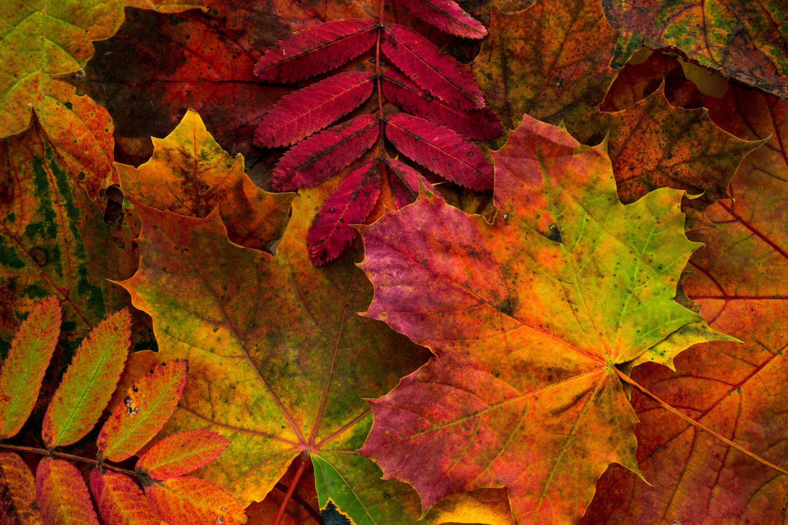 During the sunny days of summer, deciduous plants use chlorophyll to convert the long hours of sunlight into energy, then into new plant mass. That chlorophyll is what gives leaves and grass their green color. In the fall, as the sunlight weakens and the days shorten, the chlorophyll breaks down. This lets other pigments usually masked by the chlorophyll, like yellow and orange carotenes and xanthophyll, come forward. Other chemical changes in the leaves create new pigments, like those that turn dogwoods and sumacs purple and sugar maples deep red. As the leaves change, the tree also seals off the scar behind the stem, so that when the leaf falls under its own weight it doesn’t leave a wound on the branch.