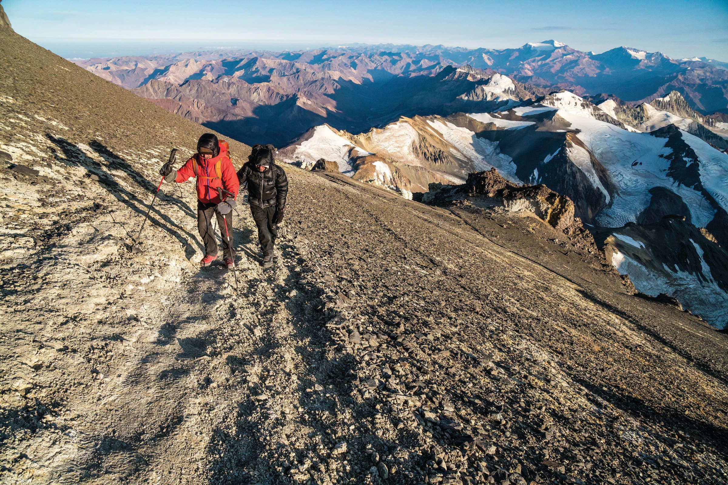 Both Bedwell, a former Navy sailor, and fellow climber and past infantryman Steve Baskis are blind veterans—Bedwell lost his vision from a hunting accident in 1997, and Baskis from an IED explosion while serving in Iraq in 2008. Bedwell made the first blind descent of the Colorado River through the Grand Canyon in 2013, and Baskis has already climbed four of the Seven Summits (the highest peaks on every continent) with plans for the rest. On Aconcagua, they were “the fastest team on the mountain, hands down,” says Harvey. While climbing, Baskis and Bedwell relied on their endurance, pushing themselves to the physical and mental limit. “It’s very tedious, being careful for a long period of time in irregular terrain—it can be mentally exhausting more than physically,” Baskis says. “You knuckle down and just try to achieve something that seems impossible.”