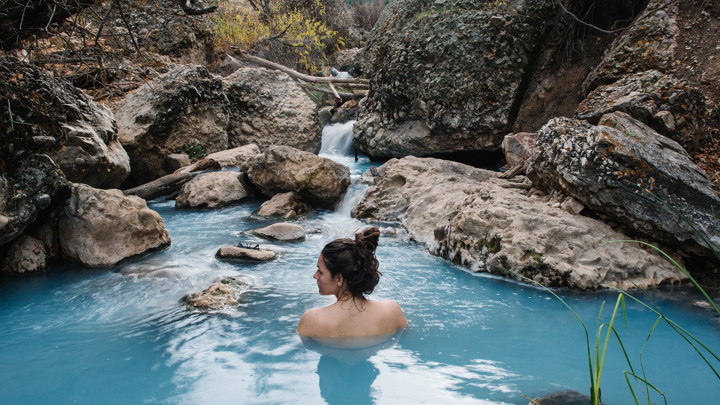 It only takes half a mile to reach California coast’s Gaviota Hot Springs, just outside Santa Barbara. The trail to get here, off Highway 101, is designed for access to the 2,548-foot Gaviota Peak, but the teal pools about a half-mile in are equally popular. From the trailhead on Gaviota Park Boundary Road, walk the main fire road up to Trespass Trail, and then hike until you reach the creek, which you’ll follow to a clear-blue geothermal pool.