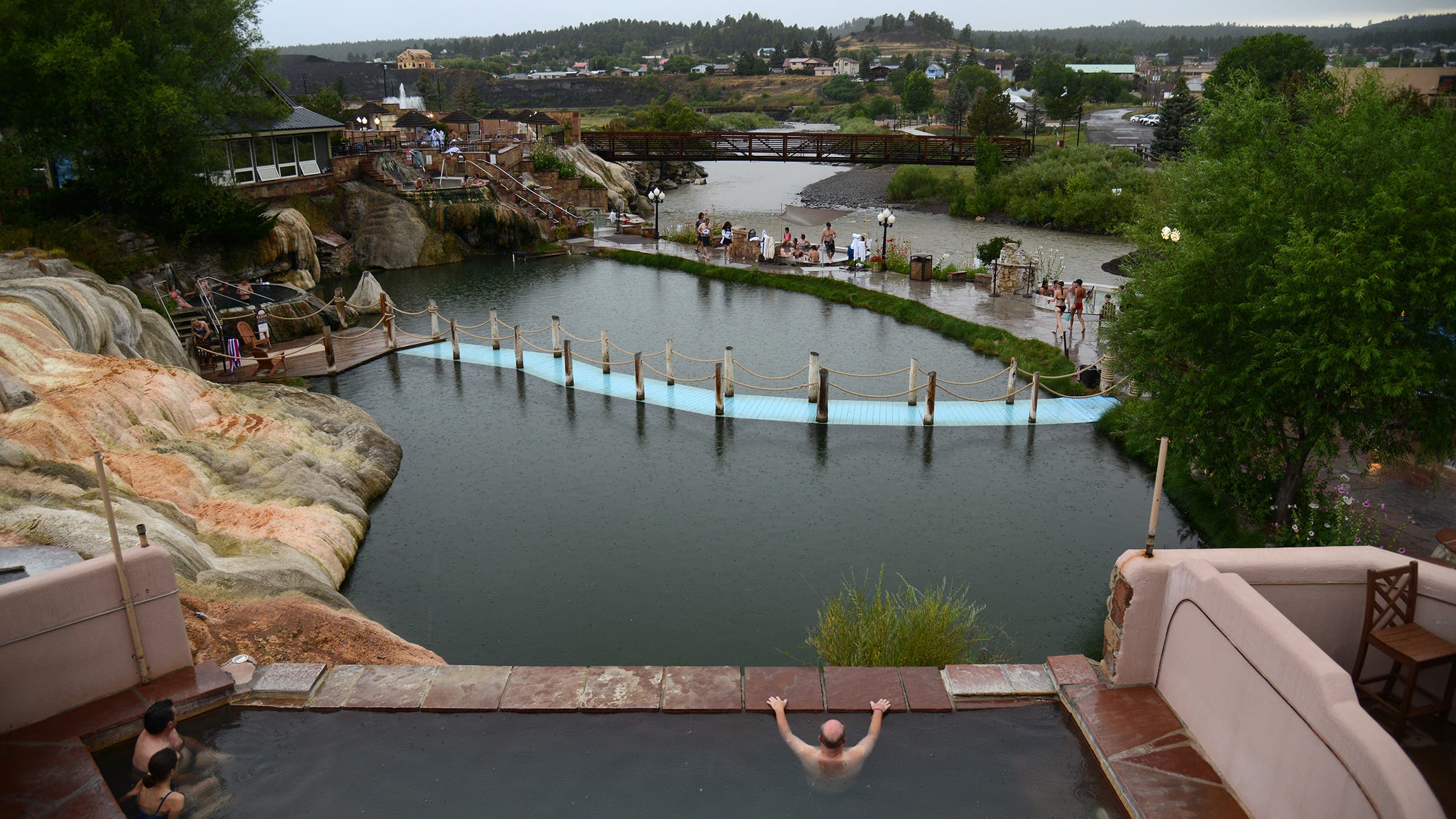 The Colorado town of Pagosa Springs is famous for its aquifer—one of the world’s deepest at more than 1,000 feet—but just north of this is a more rustic yet equally pristine option: Rainbow Hot Springs. It’s a nine-mile round-trip hike from the West Fork Trailhead to reach the pools, but this trek through the Weminuche Wilderness Area is as stunning as the pools it leads to. The surroundings alternate from trickling streams to pine-dotted hills, with two steaming mineral-rich pools ranging from 95 to 105 degrees as the grand finale.