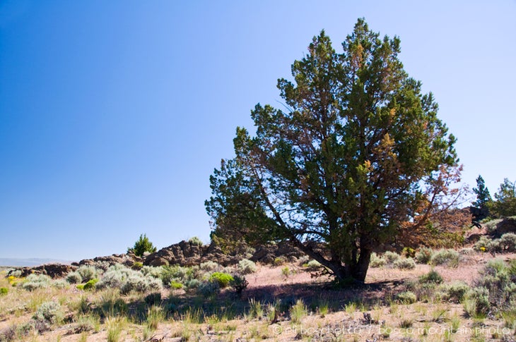 Start at the northern trailhead, on a gated gravel road just west of Hospital Rock. The first two miles is an easy amble along old roadbed, with Mt. Shasta’s snowy peak glistening to the west. At the first fork in the road, continue south, now on rougher, overgrown tracks and cross a portion of an old lava flow. At the Juniper Butte trail junction take the right fork around the west side. Just a little ways beyond, a few large juniper trees offer a much-needed respite from the sun.