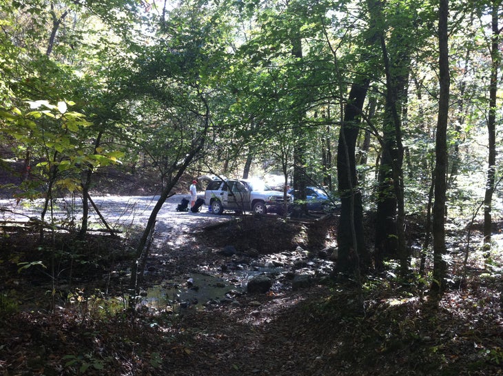Trail crosses Caney Creek (you may get wet). Trail picks back up on the opposite side upstream.