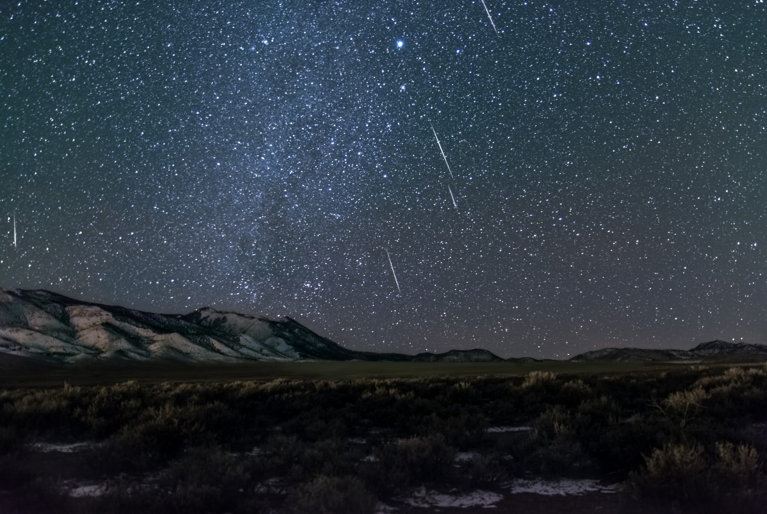Long exposure image of the Milky way shows a satellite streaking through the summer night sky over the Badlands, South Dakota. A passing car provides the lighting for the mountains in the foreground. (Photo: LiHotShots/iStock via Getty Images)