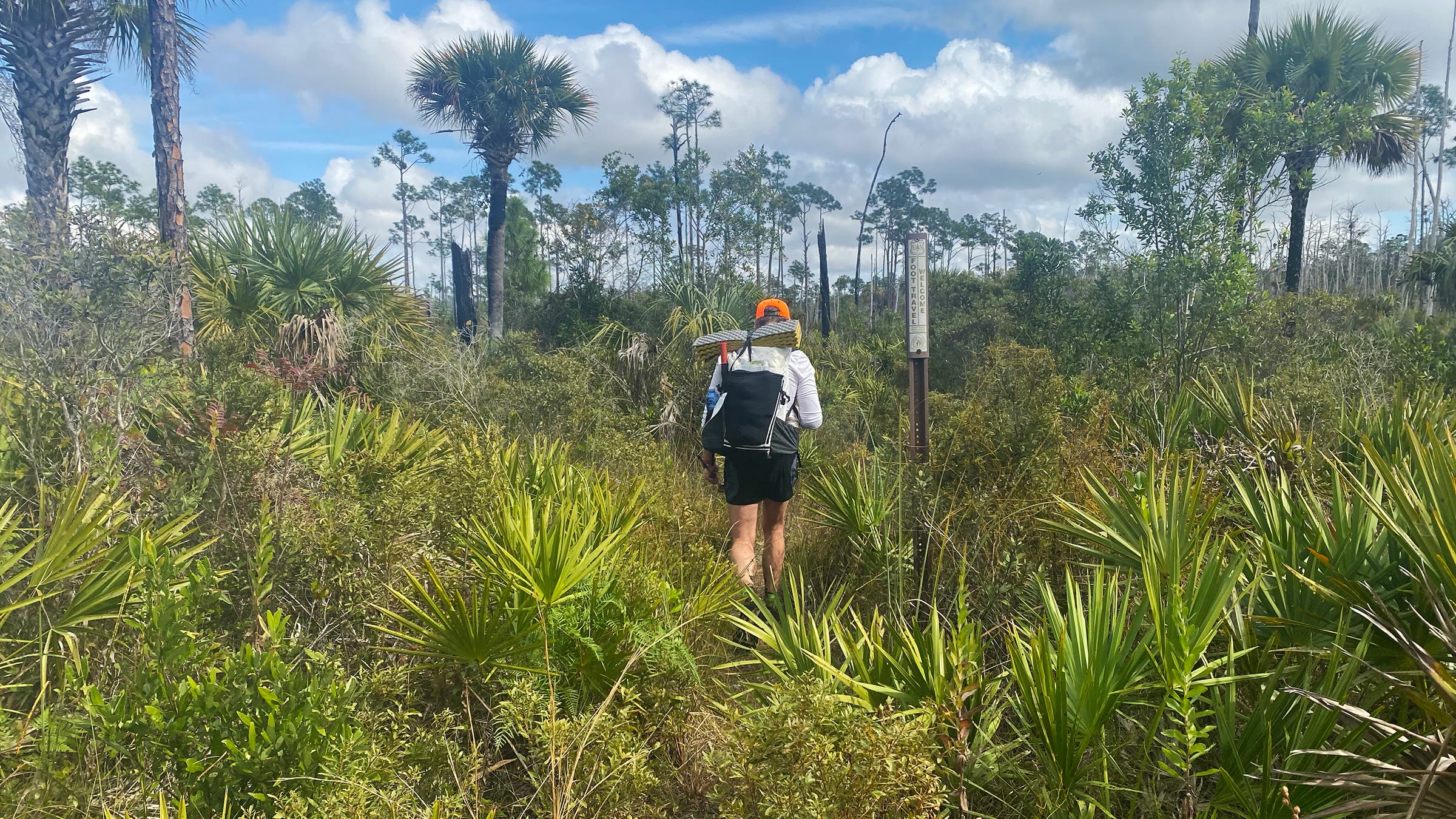 A few days ago and several hundred miles north of the Florida Trail’s cruel gambit, in a 54,000-acre sweep of palms and grasses called Kissimmee Prairie Preserve State Park, we awoke to record-low temperatures—just above freezing, a rarity in that part of southern Florida. It was so frigid, in fact, that iguanas were falling from the trees (something these cold-blooded creatures do when they lose their energy and grip). Goose bumps juxtaposed with palm trees and my own visible breath made for a surreal morning scene. We zipped our jackets against the wind and started hiking with the rising sun.