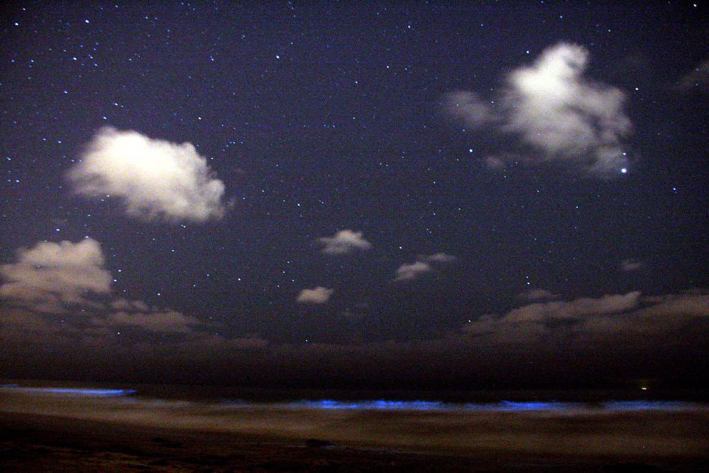 Missed bioluminescence in biology class? Here are three wild places to see this phenomenon–a chemical reaction between an enzyme called luciferin and oxygen that lights up sea life, insects, and mushrooms.